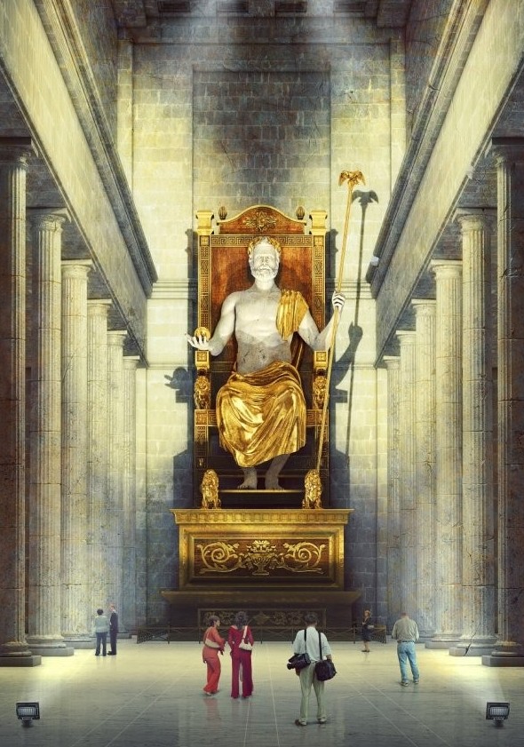 Была воздвигнута в V веке до нашей эры и находилась в мраморном храме Зевса на греческом полуострове Пелопоннес.