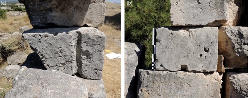 «Для таких тяжелых блоков и при мощном трении между ними ровная укладка была проблемой, — пишет Пьераттини. — Даже в поздние времена для таких манипуляций в камне вытачивались отверстия под металлические рычаги. Отметины, на которые до сих пор обращали недостаточно внимания, позволили показать, что строители ранних храмов Коринфа и Истмии уже использовали рычаги для установки блоков».
