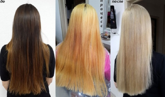 Тут-то и начинаются проблемы: она не для окрашивания седых волос, а для осветления тёмных. Шевелюра брюнеток становится грязно-жёлтой и чтобы довести её до блонда, нужно затонировать противоположным цветом.