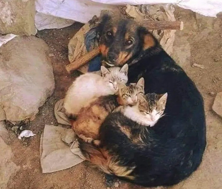 13. После долгого отсутствия наша собака была найдена, защищая этих осиротевших котят