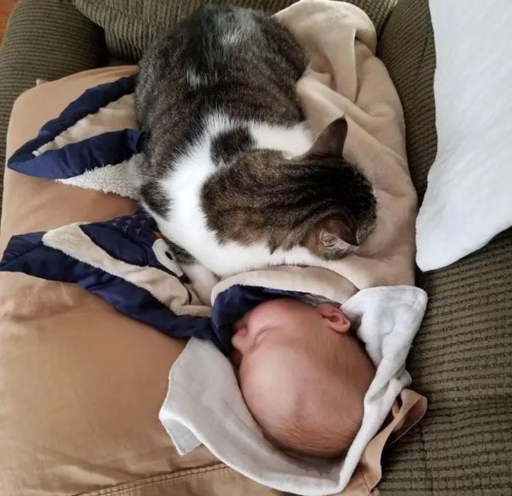 1. Лучший кошачий папа на свете, он даже не шевелится, пока котёнок спит