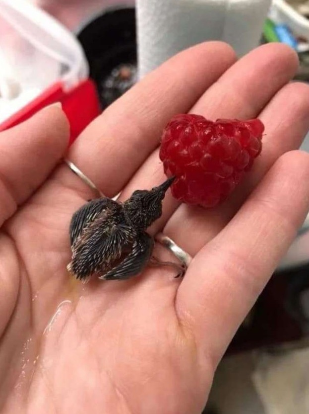 Колибри в сравнении с малиной