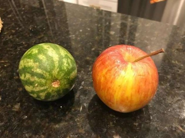 Созревший арбуз размером с яблоко