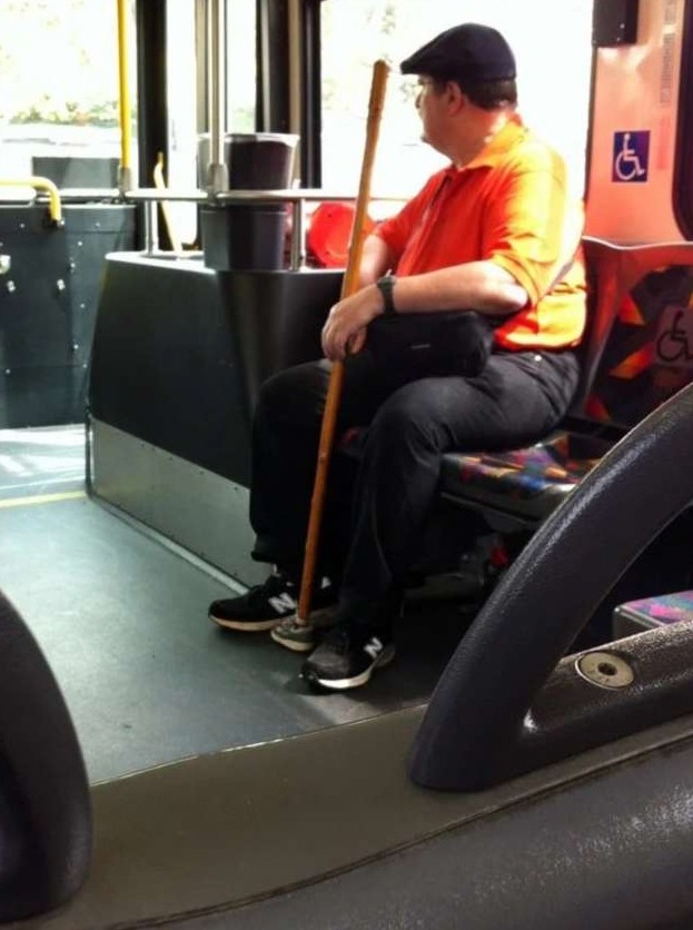 У мужчины на палочке есть маленький ботиночек