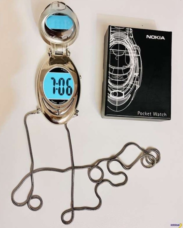 Nokia 8580 ‘Pocket Watch’, гаджет был представлен в 2002 году. Вообще они не совсем отбитые тогда были, просто компания была на вершине успеха, и к ней обратились киношники, чтобы помогли с гаджетами для фильма «Особое мнение» (жанр фантастический боевик). Среди прочего получились и эти часы со встроенным зеркалом. Да так понравились, что их выпустили в продажу.