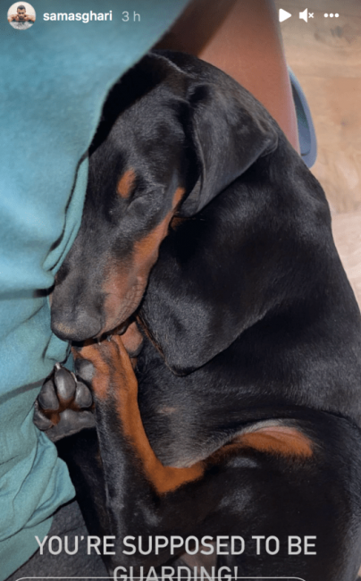 27-летний Сэм поделился фотографиями и видео собаки, которую они назвали Поршей, показывая, что она — их новая «домашняя охрана».