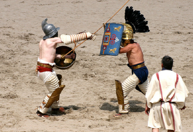 Гладиаторов старались беречь. Им выдавали снаряжение получше. Да и сами битвы представляли из себя театрализованное представление. Часто обыгрывающее какие-то события из прошлого или эпохальные битвы.
