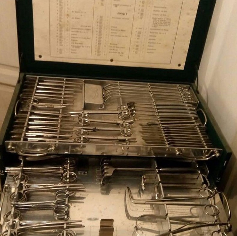 Набор медицинских инструментов Оригинальный сундучок с медицинскими инструментами Aesculap выставлен на аукцион с начальной ценой в 7 тысяч евро. Он выпущен в 1939 году, находится в идеальном состоянии вместе со всем содержимым, на инструментах даже сохранилась заводская смазка, а ещё к нему полагается пакет документов.