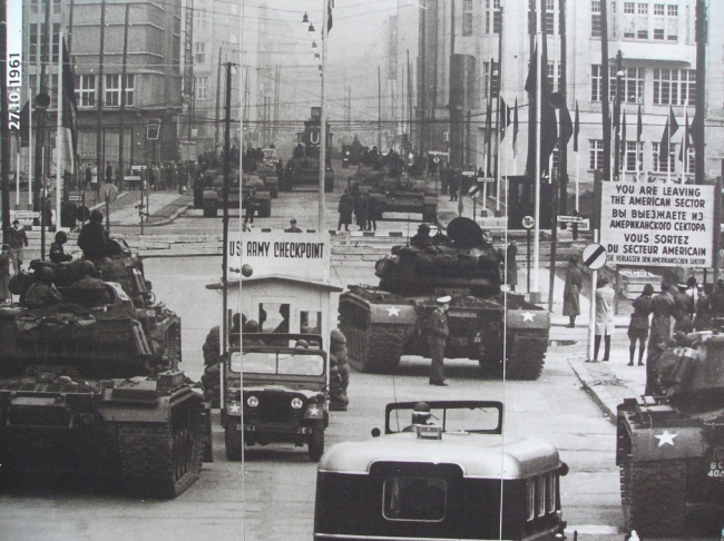 27 октября 1961 года на границе американского и советского секторов в Берлине возник самый серьезный конфликт, известный в западной историографии как «инцидент у пропускного пункта Чарли»: американские войска начали операцию по уничтожению пограничных заграждений, разделивших Берлин. К контрольно-пропускному пункту двинулась колонна американской военной техники. Впереди шли три джипа, за ними — бульдозеры, замыкали колонну 10 танков. После того, как джипы беспрепятственно проехали КПП, из близлежащих улиц вышли советские танки. Бульдозеры оказались заблокированы на западной территории.