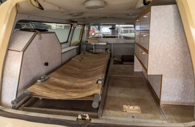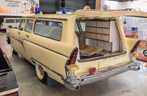 Носилки также вкатывались внутрь со стороны багажника. Задние окна либо закрашивали белой краской, либо закрывали занавесками