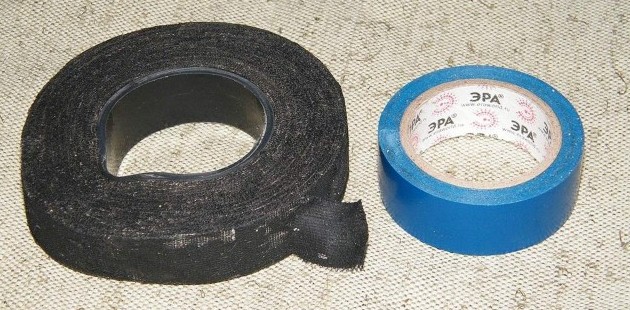 Чёрная тканевая изолента и синяя изолента из ПВХ