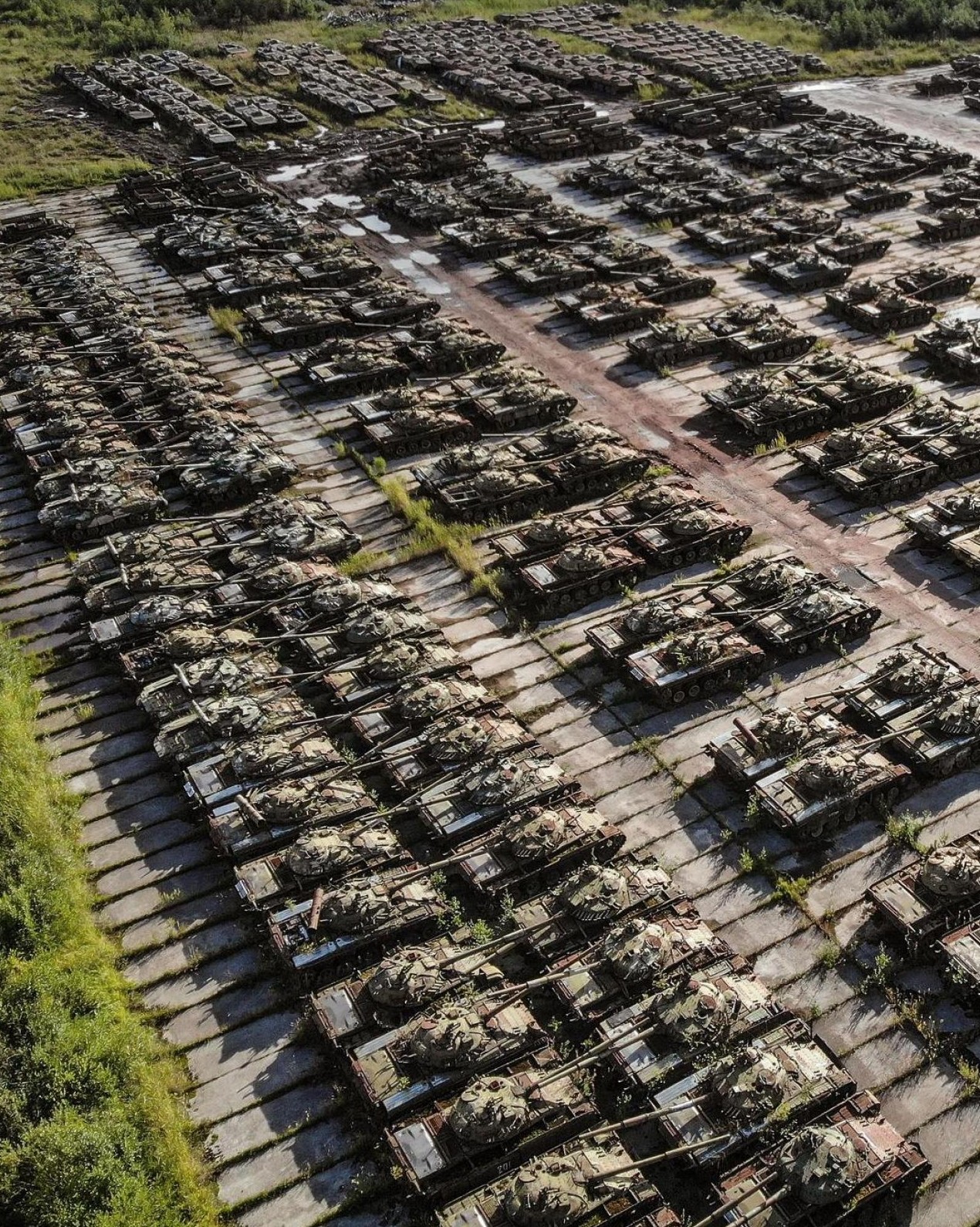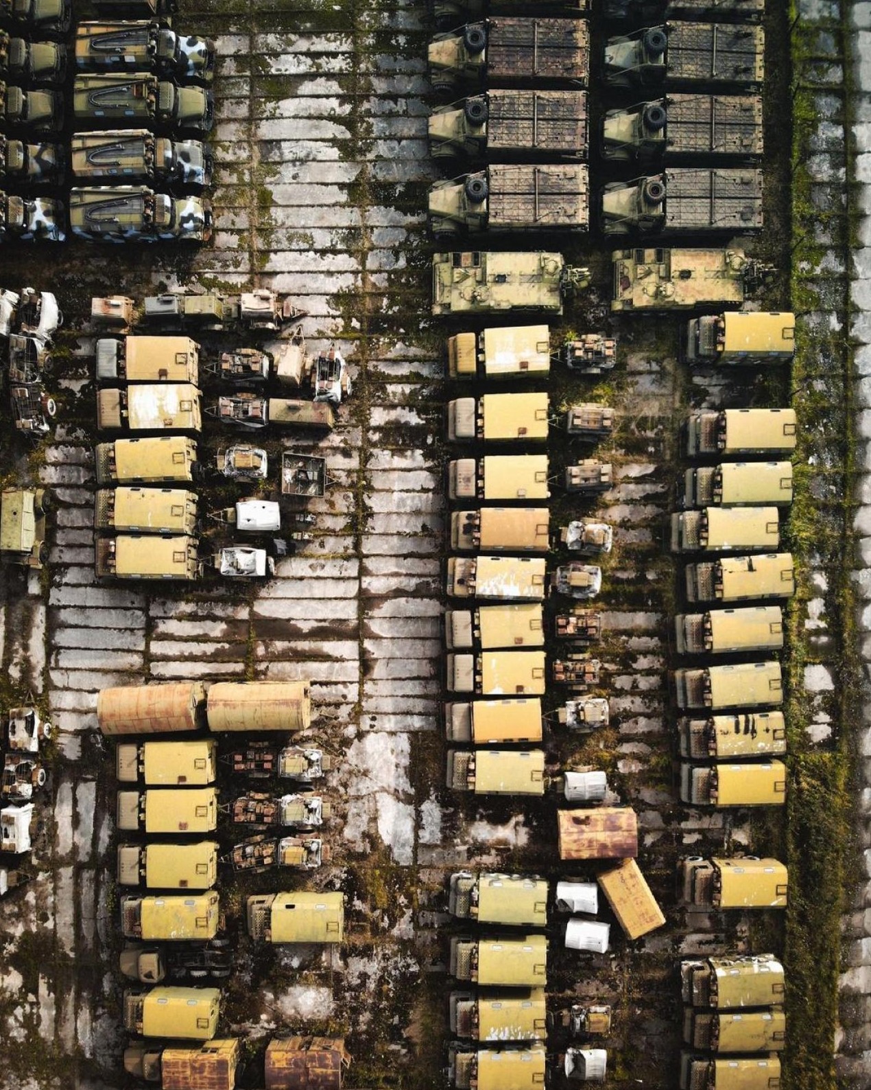 На первый взгляд кажется, что эти лодки, танки и самолеты выстроены и готовы к действию, но на самом деле их бросили гнить.