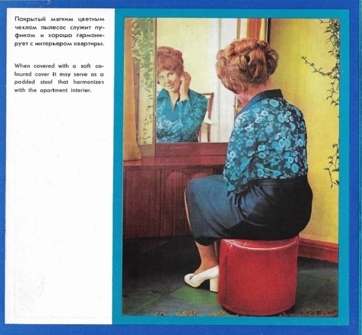 Плюсом «Урала» было еще и то, что не нужно было думать, где его хранить, — вместе с пылесосом продавался чехол из простеганного кожзама, который превращал агрегат в элегантный пуфик.
