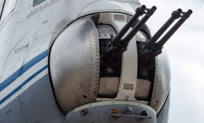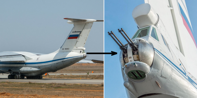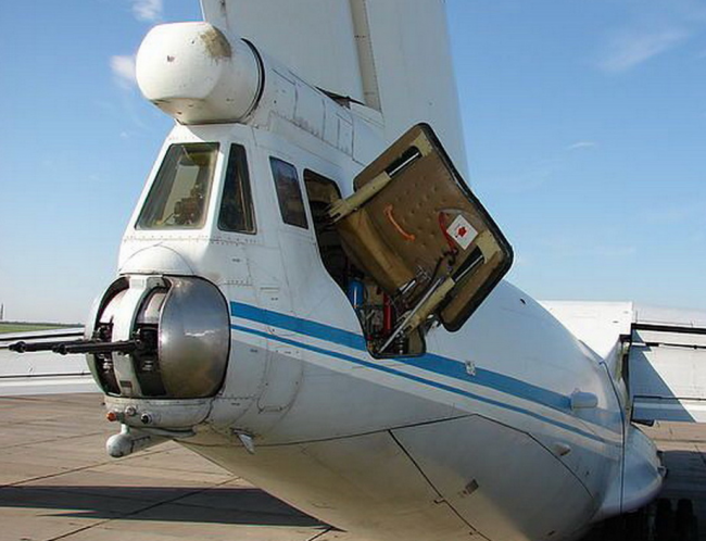 Многие видели военно-транспортный самолёт Ил-76, но не все знают, что у него в хвосте. А там две двуствольные пушки ГШ-23Л калибра 23 мм, которые ведут огонь в автоматическом режиме.