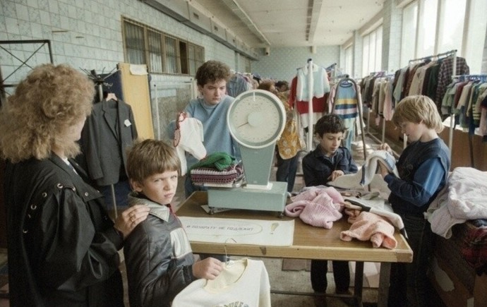 Пареньку выбрали новую футболку из магазина Секонд-хенд, 3 мая 1992 год.