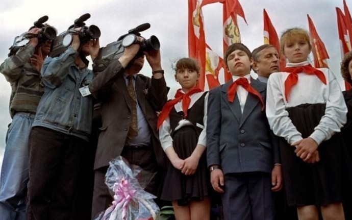 Постсоветские пионеры слушают выступление лидера КПРФ Геннадия Зюганова. Красноярск, 1996 год.