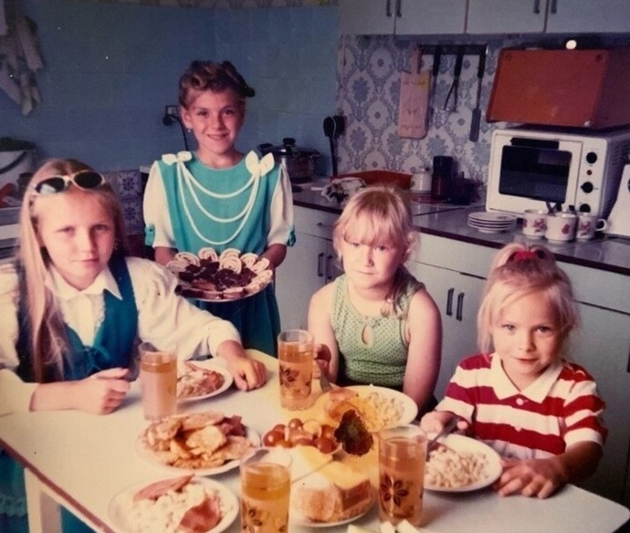 Скромный день рождения 1990-х, с компотом и жареной колбасой.