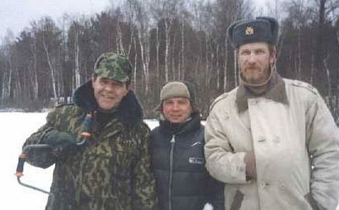 На съёмках фильма «Особенности национальной охоты в зимний период», 2000 год.![]()