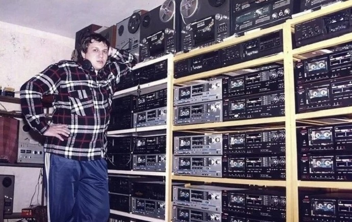 Аудиопират записывает музыкальные новинки, 1990-е годы.