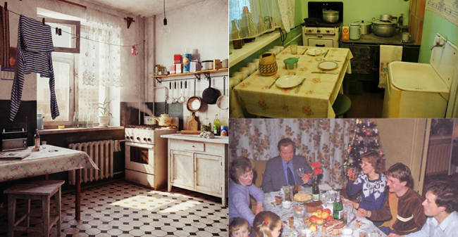 Даже если вы терпеть не можете такие скатерти и смотрите на них с отвращением, как на пережиток прошлого, просто представьте, насколько это было удобно тогда и почему клеёнка — это круто. Тогда не было стиральных машин-автоматов повсеместно, стирать было дорого, да и зачем, если есть она — КЛЕЁНКА! Она мало того, что удобная, так ещё и красивая. А ещё прямо на ней можно резать продукты, не боясь оставить отметены на столе, ведь не нужно бояться уничтожить клеёнку — она дешёвая. И с тех пор о классических скатертях как-то забыли.