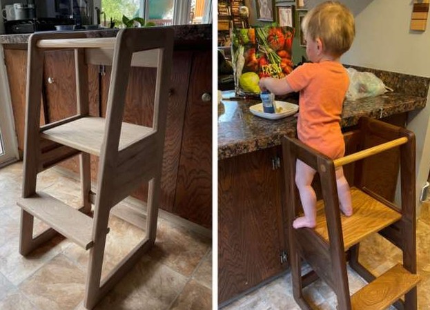 Дети обожают принимать участие в домашних делах или просто смотреть на то, как родители ими занимаются. Чтобы не держать ребенка на руках или тем более не ставить на стул, с которого он может в любой момент упасть, лучше использовать специальное приспособление — устойчивое и с ограничениями. Конечно, искусные столяры могут сами смастерить такое, а все остальные просто купят в магазине.