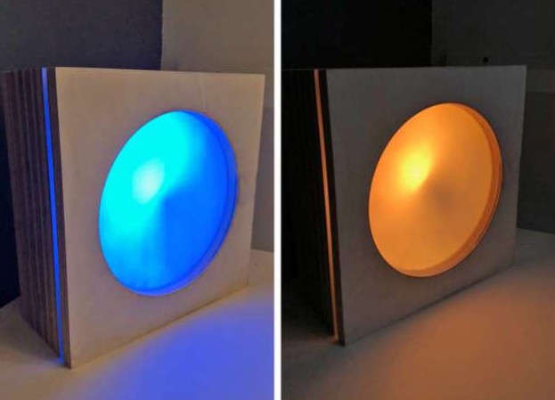 «Дочери только что исполнилось 2 года, и мы собирались купить ей часы, которые помогают засыпать. Я поржал над ценником в 60 баксов и решил, что сам сделаю красивее и дешевле. Итак, результат. Поверхность становится синей, когда пора спать, и оранжевой, когда нужно просыпаться».