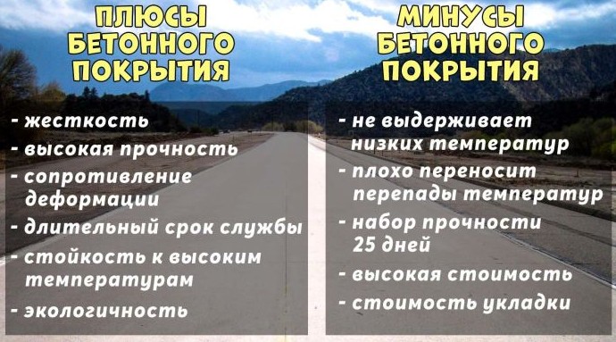Помимо этого, бетонные дороги обладают еще несколькими серьезными плюсами. Помимо высокой прочности, жесткости и надежности, такие дороги хорошо переносят летний зной в отличие от асфальтных. Бетон лучше сопротивляется деформации, более экологичен, а также лучше отражает свет, что особенно полезно при движении ночью.