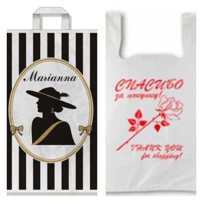 Начальница утвердила этот, и мешки «Марианна» запустили в производство. Были пакеты с петлевой ручкой, с прорубной и «майки», которые больше всего распространились. Их производили потом все, кажется, предприятия, просто называли по-другому — я видела Марину, Снежану, Милену… Настолько же популярный был, пожалуй, только мой проект мешка «Спасибо за покупку» с розочками.