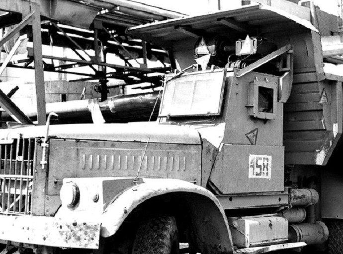За основу специалисты экспериментального отдела взяли стандартный трехосный самосвал КрАЗ-256Б — по-хорошему кондовую, надежную машину. Первоначальный план предусматривал скрытную установку в кабину защитной свинцовой капсулы и фильтровентиляционной установки, допускающей работу водителя на территории, зараженной радиоактивной пылью. Заказчики по понятным причинам не хотели, чтобы ликвидаторский КрАЗ выделялся на общем фоне.