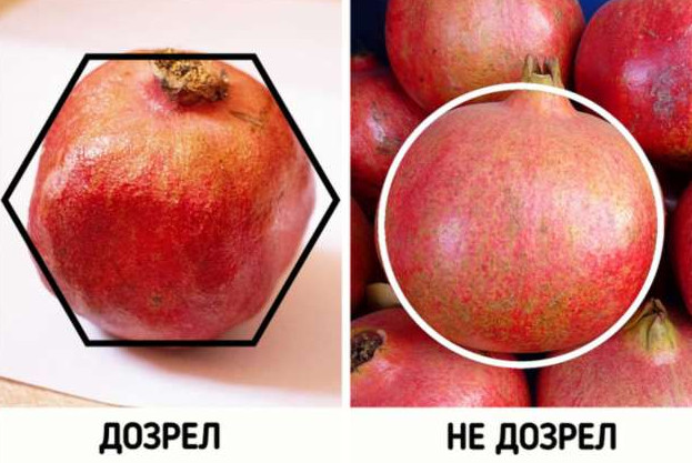Иногда покупка граната омрачается тем, что внутри он оказывается бледным и несладким. Чтобы такого не произошло, вот на что стоит обратить внимание: по форме плод должен быть не идеально круглым, а угловатым, а еще признаками зрелости являются гладкость и упругость кожицы.