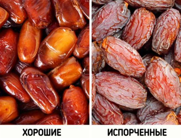 Свежие финики могут быть сморщенными, но не сильно, также они не должны быть слишком жесткими. Лучше всего, когда сухофрукты выглядят мясистыми и имеют слегка глянцевую кожуру. На них не должно быть кристаллов сахара и белых пятен, так как их наличие говорит об уже начавшейся порче.