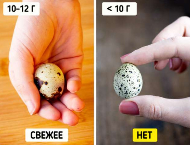 При выборе перепелиных яиц первым делом необходимо тщательно проверить и осмотреть состояние скорлупы: на ней не должно быть повреждений. Стоит помнить и о сроке хранения: до 30 дней при комнатной температуре и до 60 — в холодильнике. Если нет даты, то можно определить свежесть яиц по весу. Свежее будет весить 10–12 г. Если вес намного меньше, это значит, что перепелиные яйца (как и любые другие виды яиц) уже начали усыхать, — лучше выбрать другие.
