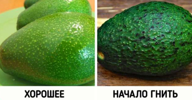 Любые ярко выраженные пятна, отличающиеся от основного цвета, говорят о том, что с плодом что-то не так. Лучше избегать авокадо с темными отметинами на кожуре, так как зачастую это признак начала процесса гниения. Также можно надавить на область рядом с плодоножкой: если она продавилась, то, скорее всего, плод перезрел.