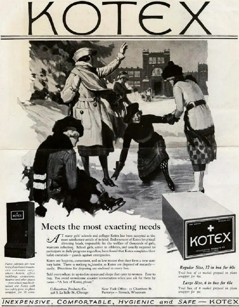 В 1917 году американская фирма Kimberly-Clark начала массовое производство целлюлозной ваты, она впитывала любые жидкости в пять раз быстрее, чем любые перевязочные материалы. К 1920 году военные стали сокращать закупки чудо-ваты и встал вопрос о сокращении производства. Но тут возникла идея о женских гигиенических прокладках. говорят, что её подсказали медсестры, которые трудились во фронтовых госпиталях. Так появились прокладки Kotex. Сначала они не пользовались особым спросом, а потом произошел настоящий бум и прокладки стали использовать практически все женщины в США, ну а следом и в остальном мире.