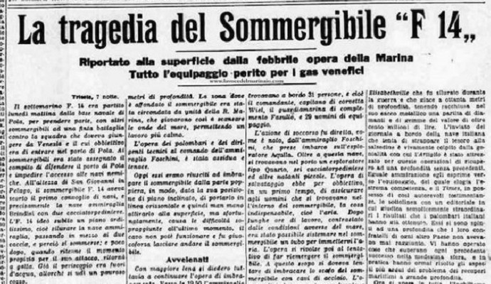Утром 7 августа 1917 года в 7 милях к W-у от острова Бриони, у морской базы Пола, во время маневров, подводная лодка „F-14" была в погруженном состоянии протаранена миноносцем „Миссори".