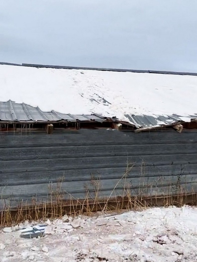 Отпечатки копыт, которые нахальная корова оставила на заснеженной крыше сарая