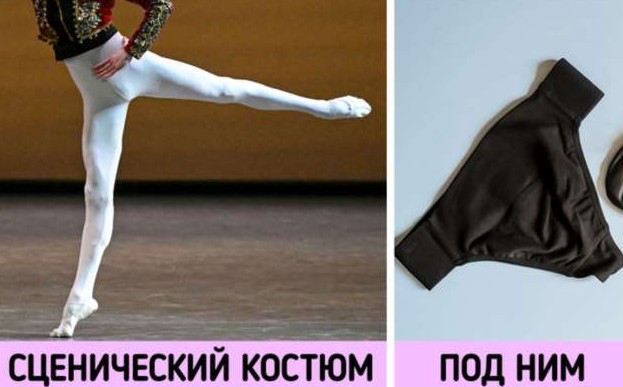 Под сценическими лосинами танцоры-мужчины носят не обычное нижнее белье, а специальный бандаж. Его второе название — «танцевальный пояс», и он является неотъемлемой частью костюма и первостепенным предметом одежды, который парни надевают на занятия, репетиции или выступления. Бандаж надевается под колготки или брюки вместо нижнего белья, и его цель — защитить тело от травм.