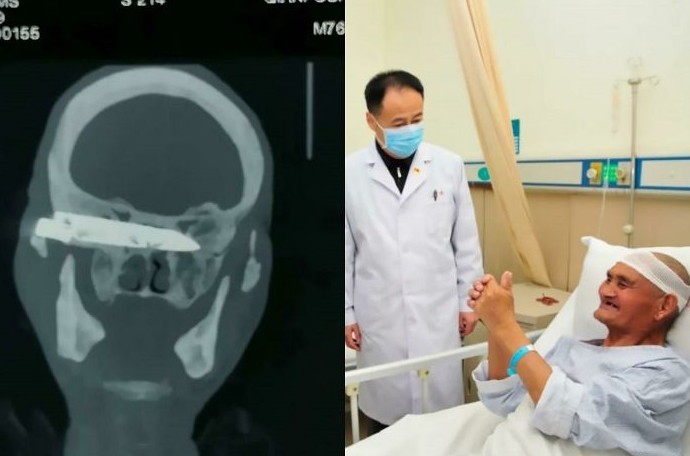 76-летний китайский фермер 26 лет проходил с лезвием ножа в голове. Лезвие было длиной в 10 см, но каким-то невероятным образом не задело никаких важных частей мозга и кровеносные сосуды.