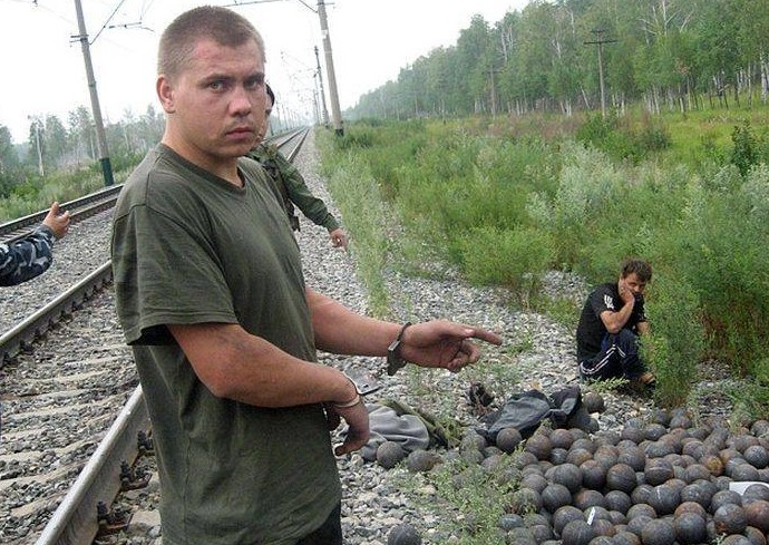 Группа ребят решила грабануть товарный поезд, который вез чугунные ядра, а потом сдать их. За пол часа, они выгрузили 2168 шаров по 7 кило 800 грамм (для сравнения вес спортивного снаряда на 500 грамм меньше). В общей сложности они подняли 17 тонн металла! Стоимость выгруженного металла потянула почти на 600 тысяч рублей.Вот кого надо было брать на Олимпийские Игры)