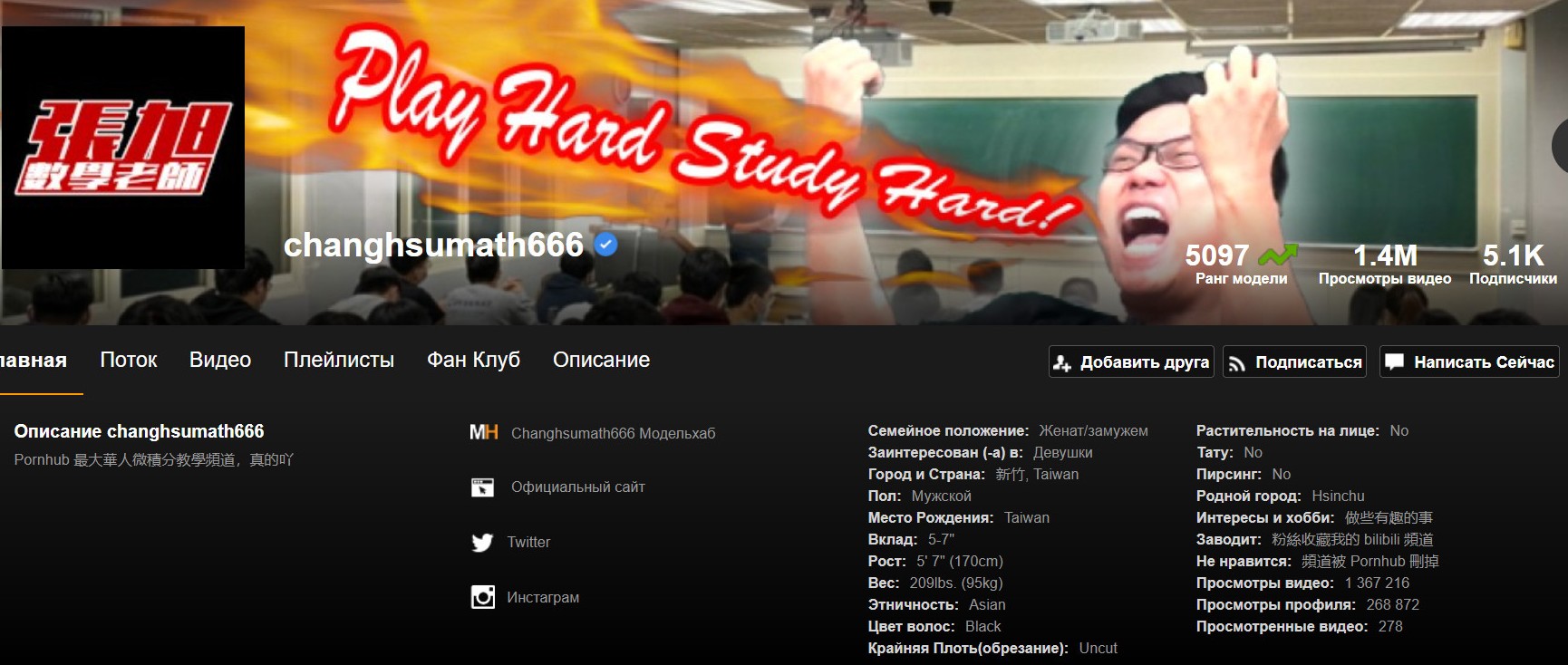 Китайский преподаватель Чжан Сюй смог занять в рейтинге порномоделей 5097-е место, несмотря на то, что никогда не раздевался перед камерой. Вместо этого он рассказывает посетителям Pornhub о математическом анализе.![На Pornhub набирают популярность лекции преподавателя из Тайваня - «Клуб - Юмора»]()