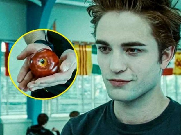 А вот и еще один знаковый кадр: Эдвард, сжимающий в руках красное яблоко. Таким образом создатели фильма решили напомнить зрителям, как выглядит книжная обложка первой части «Сумерек».