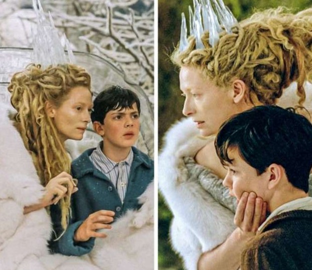 В начале фильма ледяная корона Белой колдуньи имеет внушительные размеры и состоит из длинных и острых льдинок. Но чем ближе финал, тем хуже выглядит этот символ власти — он начинает подтаивать и уменьшаться. Вполне возможно, что именно так создатели киноленты решили показать ослабление влияния когда-то могущественной королевы.
