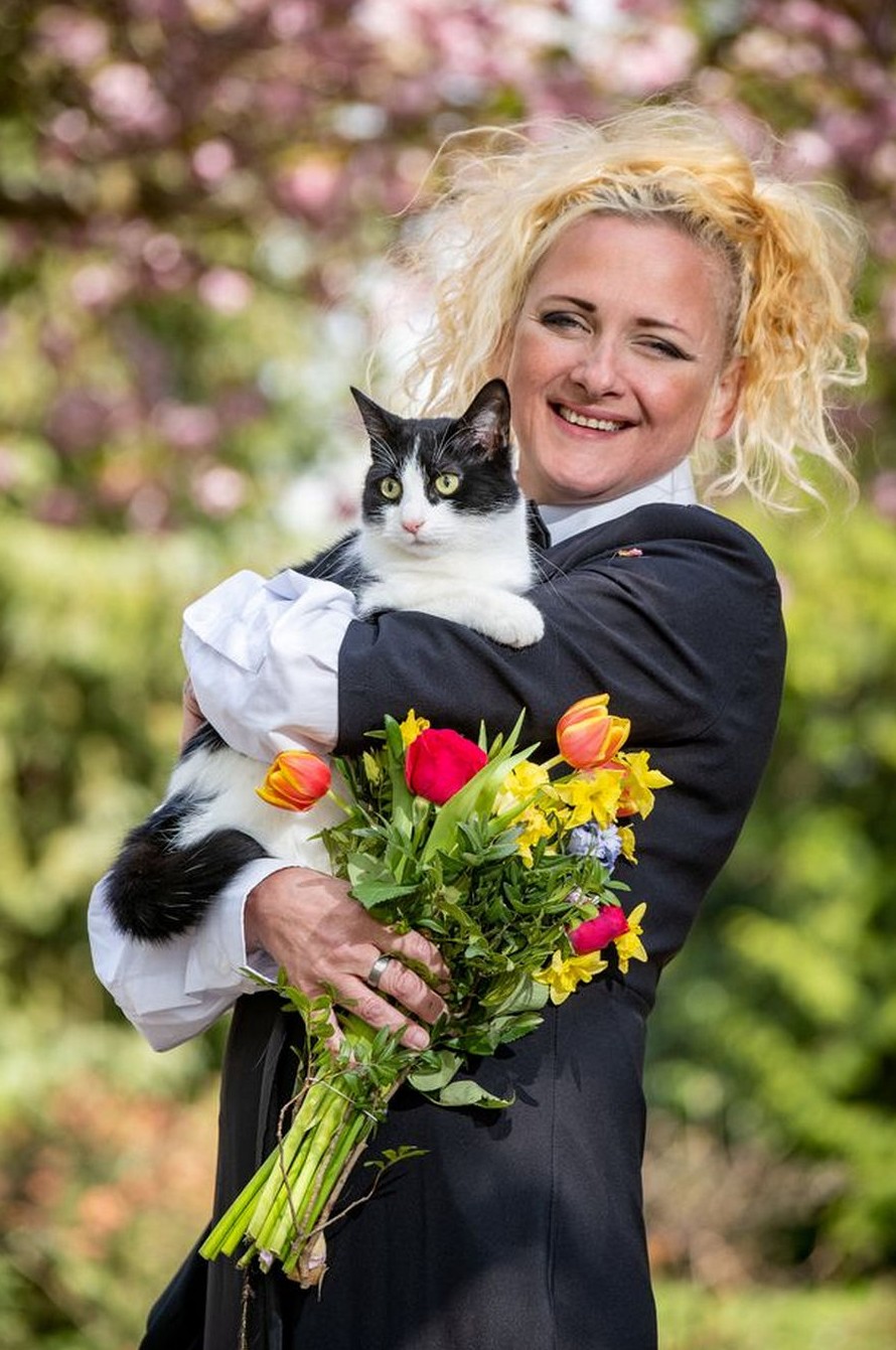 Мероприятие на юге-востоке Лондона провела подруга женщины. На свадьбу Дебора нарядилась в элегантный смокинг, а кошке повязала галстук-бабочку.