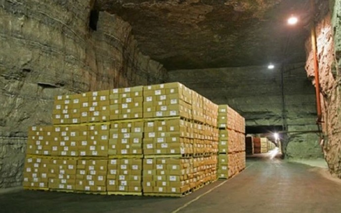 На глубине более 120 метров нет никакой живности, даже крыс. Везде стоят контрольные ловушки, специальные фанерные ящички с приманкой. Никто из живности даже мухи, тараканы, жучки в подземелье не живет. Убегают из под земли даже кошки,а люди работают, причем в три смены по 8 часов. Хранилища поделены на камеры хранения, под конкретный тип товара, за каждой камерой хранения закреплен человек, который несет материальную ответственность. За кражу банки тушенки – увольнение. Так что случаев воровства пока не было. Кругом сигнализация. На выходе — проверка. На случай прорыва водных слоёв, каждое подземное хранилище оборудованно мощными насосами которые за считанные минуты должны будут откачать воду в ливневую канализацию, специально для этих целей вырытую за территорией комбината. А 400-мм железные двери призваны надежно оградить все хранимое добро от затопления.