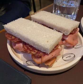 «Пошли в модный ресторан отметить годовщину. Вот как выходит закуска перед основным блюдом. Сэндвич с ветчиной и салями за $28.»