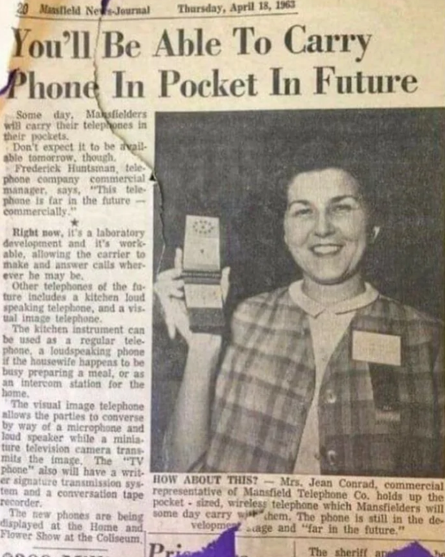 13. Статья в газете за 1963 год: «В будущем вы сможете носить телефон в кармане»
