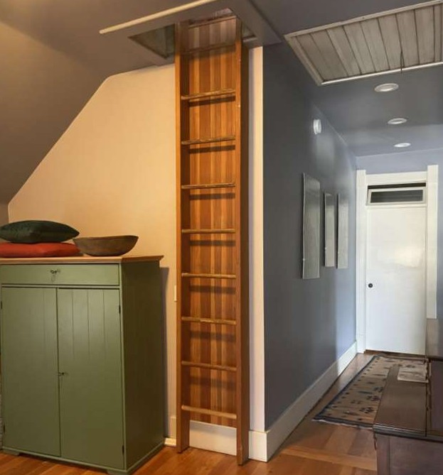 Лестница на чердак в доме 1890-х годов в викторианском стиле. Она ведет в игровую комнату и на балкон