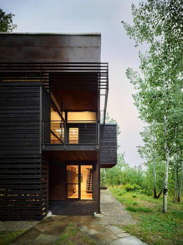 Первоначально на этом месте стояла старая темная хижина, построенная в 1970-х годах. Затем, в 2003 году, CLB Architects заменили ее на дом, в строительстве которого были использованы устойчивые к атмосферным воздействиям материалы, такие как ржавая сталь и кедр, которые со временем обеспечили полную интеграцию объекта в природную среду.