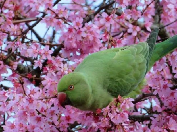 Со временем попугаи начали находить укрытие от зимних метелей и ледяных дождей на чердаках домов, а также питаться цветами и плодами растений, которые ранее были для них неизвестны. К 1990-м годам в Лондоне сформировалась небольшая, но стабильная популяция ярко-зелёных птиц. Их появление стало настолько заметным, что о встречах с ними писали в газетах и обсуждали на первых интернет-форумах.