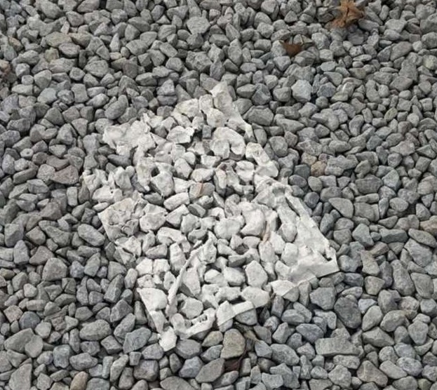 Бумага на гравии была залита дождем и как бы впечаталась в него
